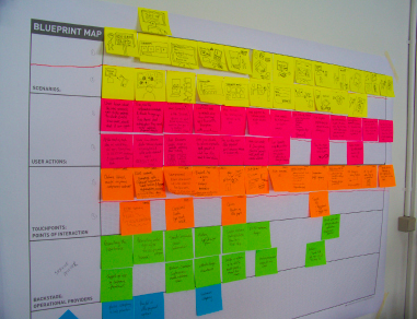 服务设计蓝图是一个描述整个服务交互过程的操作工具,通过充分的细节来验证,实现和维护。它基于图形显示技术,直观的展示整个客户体验过程中客户可见性线的前台后台功能、所有的接触点、后台进程记录以及一致的用户体验。