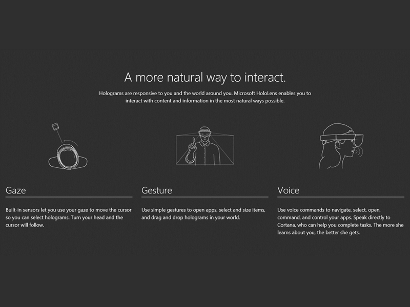 微软的全息头戴显示设备HoloLens, 以硬件设备本身作为输出口,将自然语言识别、机器视觉等人工智能技术融入行业解决方案,从而为教育、医疗、设计、装配、零售等行业带来颠覆性的跨设备、人性化体验。
