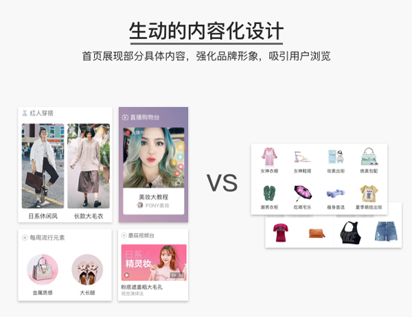 1、通过内容,要让用户从第一感官以及认知上知道这里是一个时尚平台,而非传统的货架式电商网站;