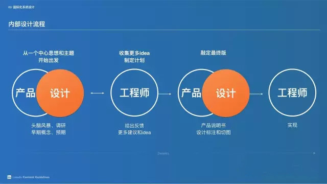 首先我们介绍了系统设计,我们要求设计师设计介入到各环节,从产品最初有一个创意概念,一直跟进直到上线;与产品绑定一起完善想法,从前期沟通需要深入理解、到分析产品目的和需求,优先考虑用户体验。