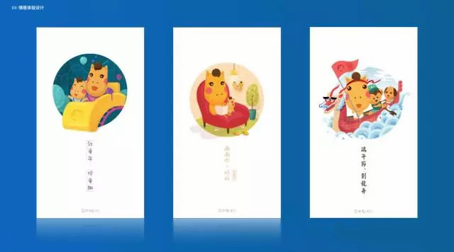 重视中国传统节日(春节)——情感设计的应用,还有节日闪屏,整体气质——亲和亲切可爱;造势构图采用圆形;设计元素赤兔始终贯穿其中,来传递品牌。