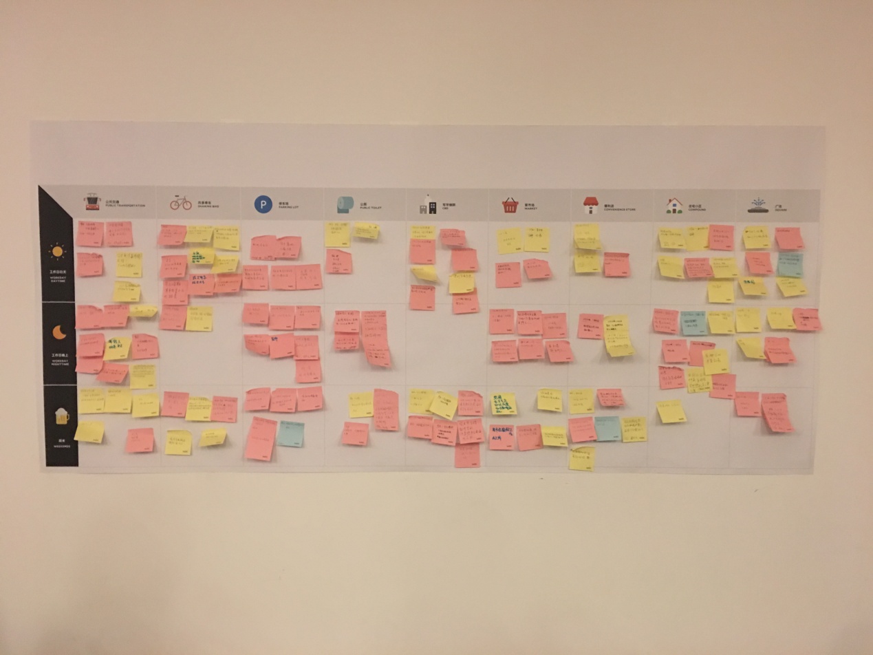 每桌嘉宾的桌子上还备有图纸和实景地图,需要他们定义问题,并通过三个不同的角色找出设计机会点,然后选择最大胆的一个。