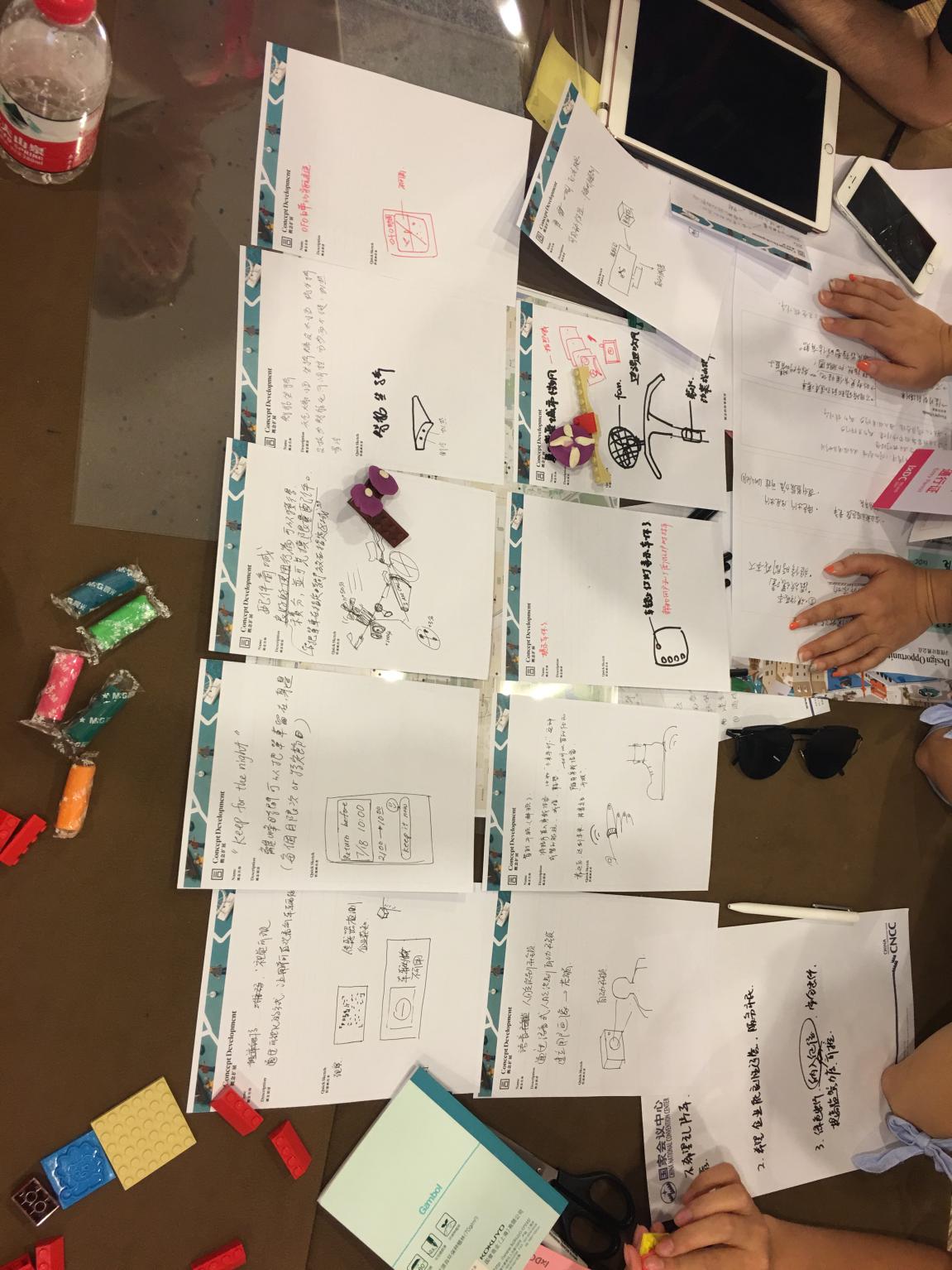 经过组员的热烈讨论,主讲人邀请每组代表上来发言,找一个机会方向,进行拓展研究,并用乐高与橡皮泥进行简单的产品模型设计。