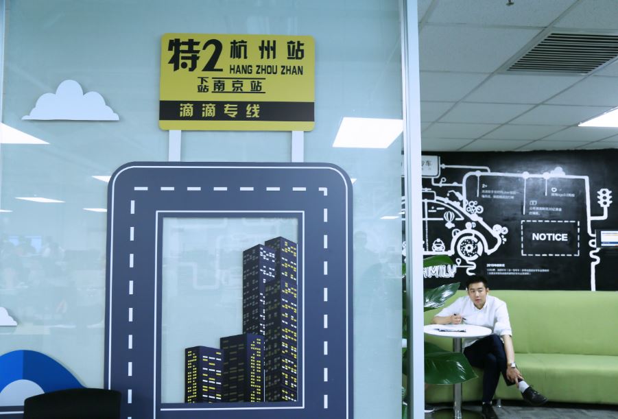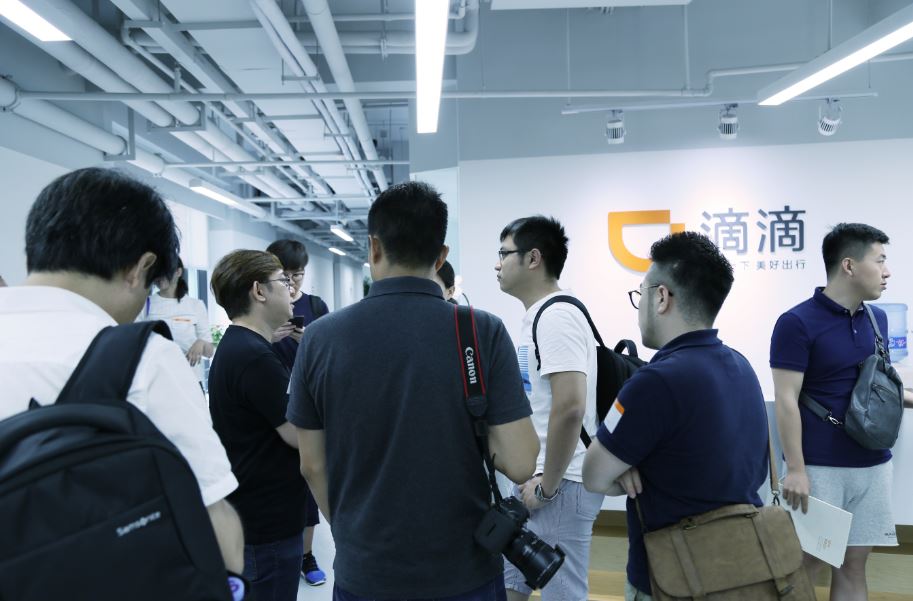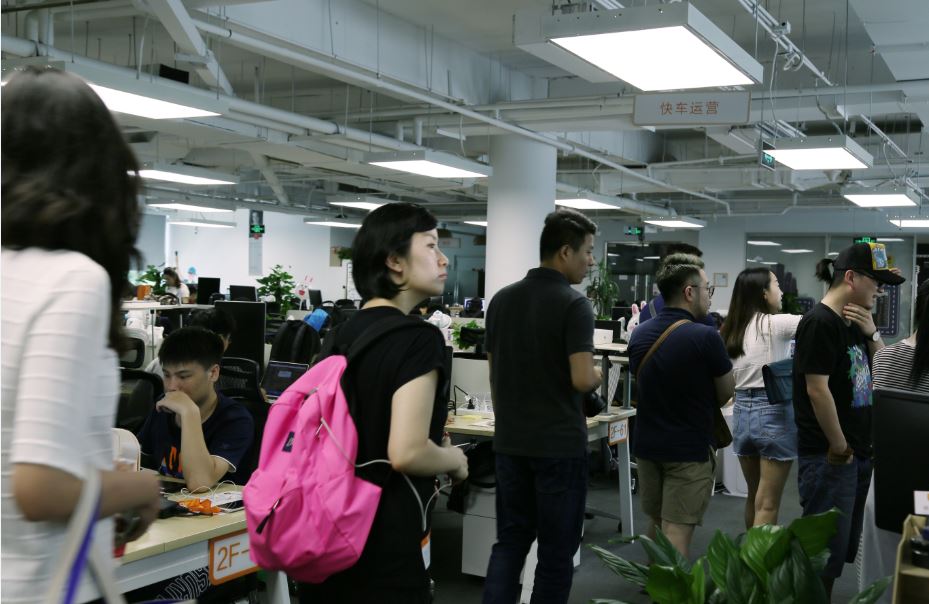 初次到来,参观人员穿梭在滴滴办公区