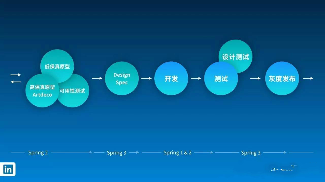 基于规范的组件库和个人能力的要求,在领英,没有专门的交互设计师和视觉设计师,有的只是产品设计师,每一个设计师仅仅针对产品设计和用户体验而思考,交互细节和视觉样式都是用户体验的优化要素。同时,我们采用敏捷开发的方法,根据功能模块,将设计师,产品经理和工程师分成不同的产品组,长时间的针对某个专门的功能领域思考和解决用户痛点。