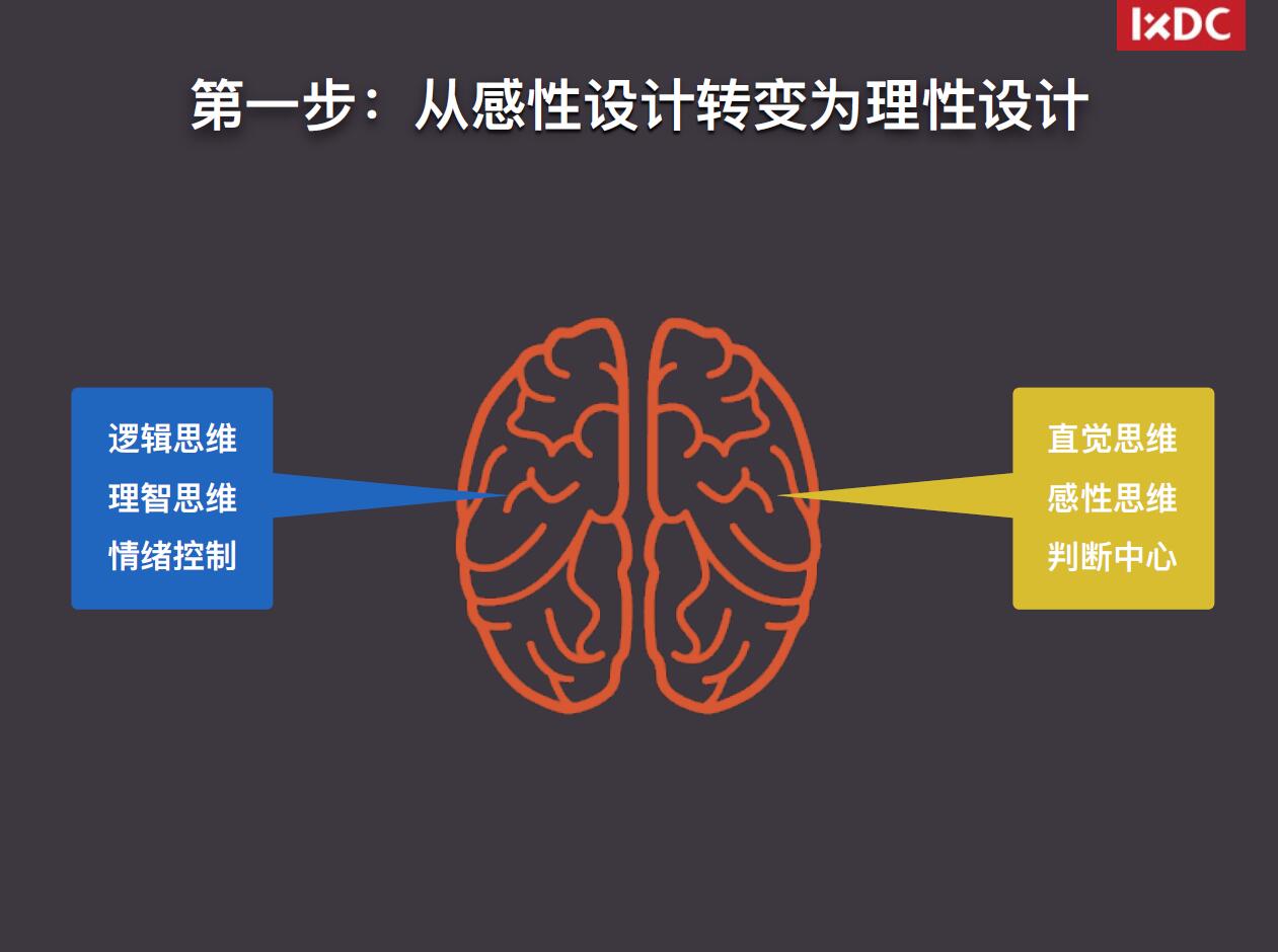感性设计的问题在哪里?一个需求来了,看了需求文档,你在脑子里做了处理,嘭,输出一个交互稿,但当别人问你为什么的时候,说不出来,只能说我觉得这个方案是OK的。这种情况在公司里会有什么结果呢,在你跟产品leader、设计leader开评审会的时候,大家都是凭感觉的,你猜谁会赢。
