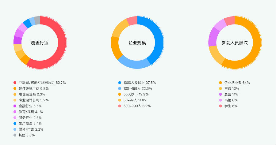 招展范围:互联网、移动互联网公司、硬件设备厂商、电信运营商、专业设计公司、金融行业、教育/科研、服务行业、生产制造、媒体广告、其它。