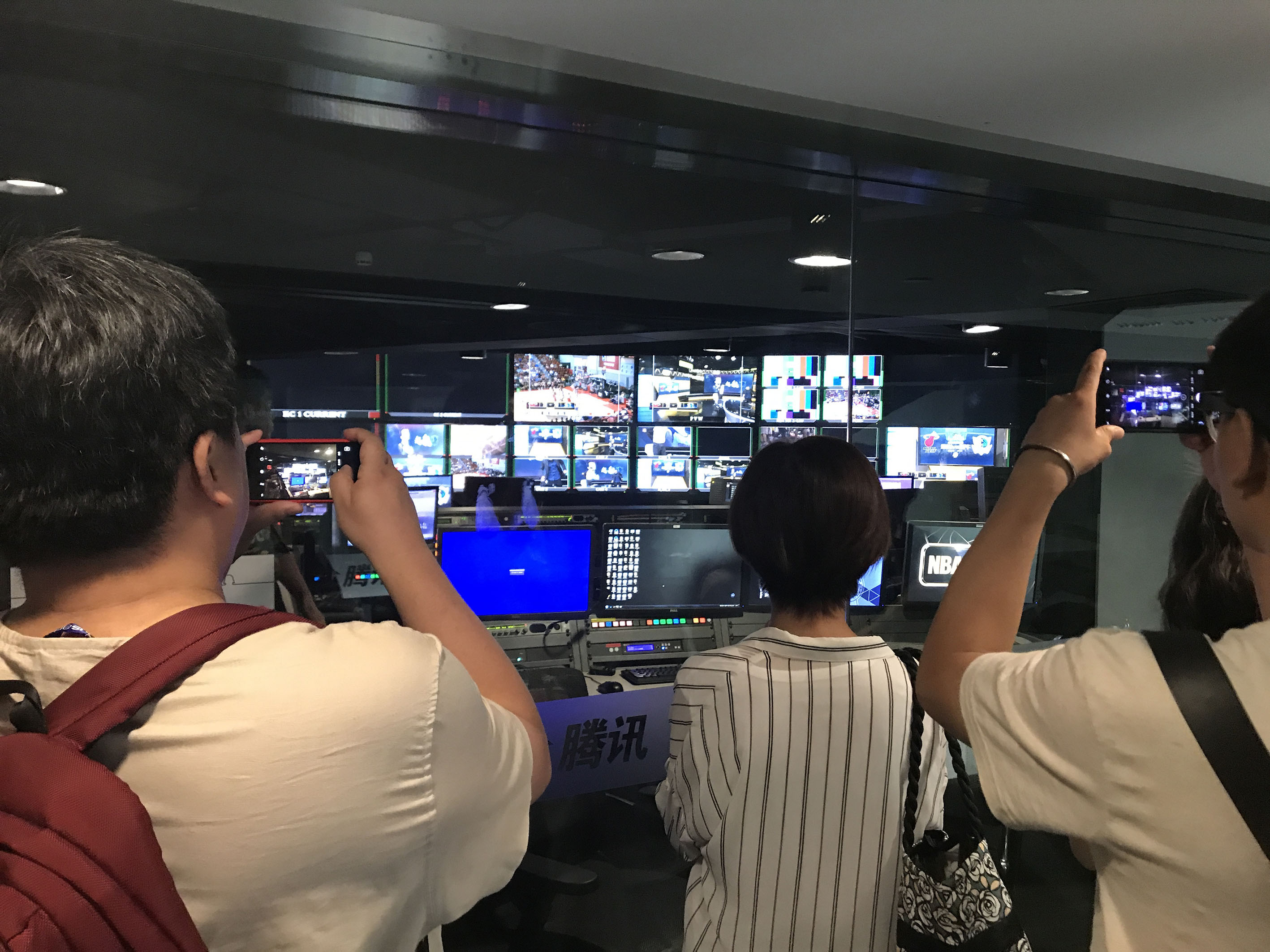 此行的第一站是腾讯网络媒体演播厅,腾讯视频精彩纷呈的节目就在这里录制。在引导人员的带领下,大家对直播间、录音室、摄影区、VIP室等房间进行了参观,对网络视频的制作过程有了进一步的了解。