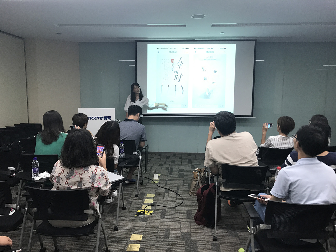 何瑀还对腾讯网的过往实例进行了分享,通过门户网站改版、深度H5设计、新闻互动等案例的分享,使大家对腾讯UED团队的工作流程有所了解。
