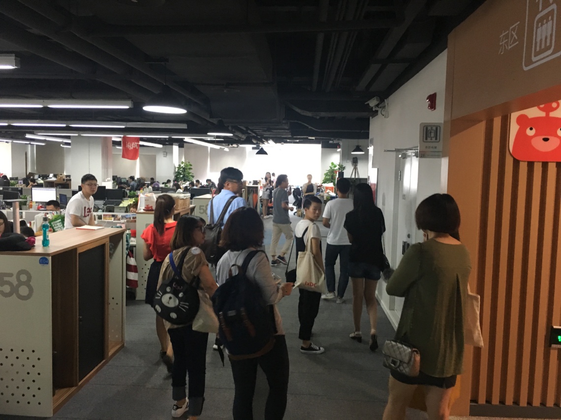 首先,58设计负责人何潇带领大家参观了集团的办公大楼,了解这里的工作环境。