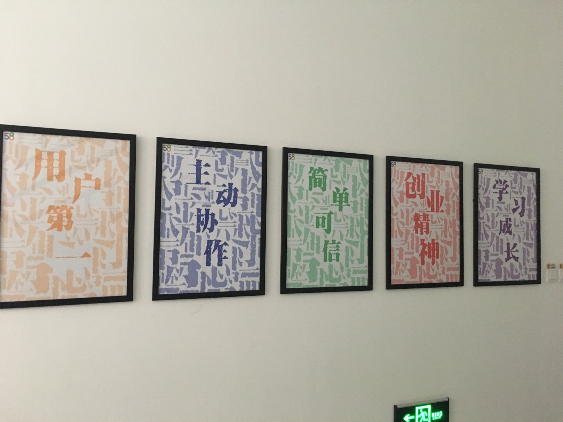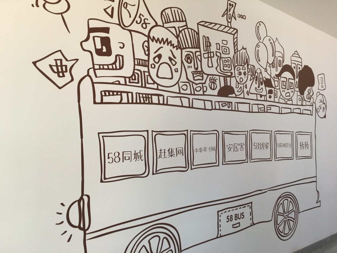 进入大楼后,大家立刻被58公司内部的创新设计氛围所感染,整座大楼的色彩与装饰都充满了活力,有趣的标语,极具创意的墙绘都体现出58公司现在的发展方向——年轻态。