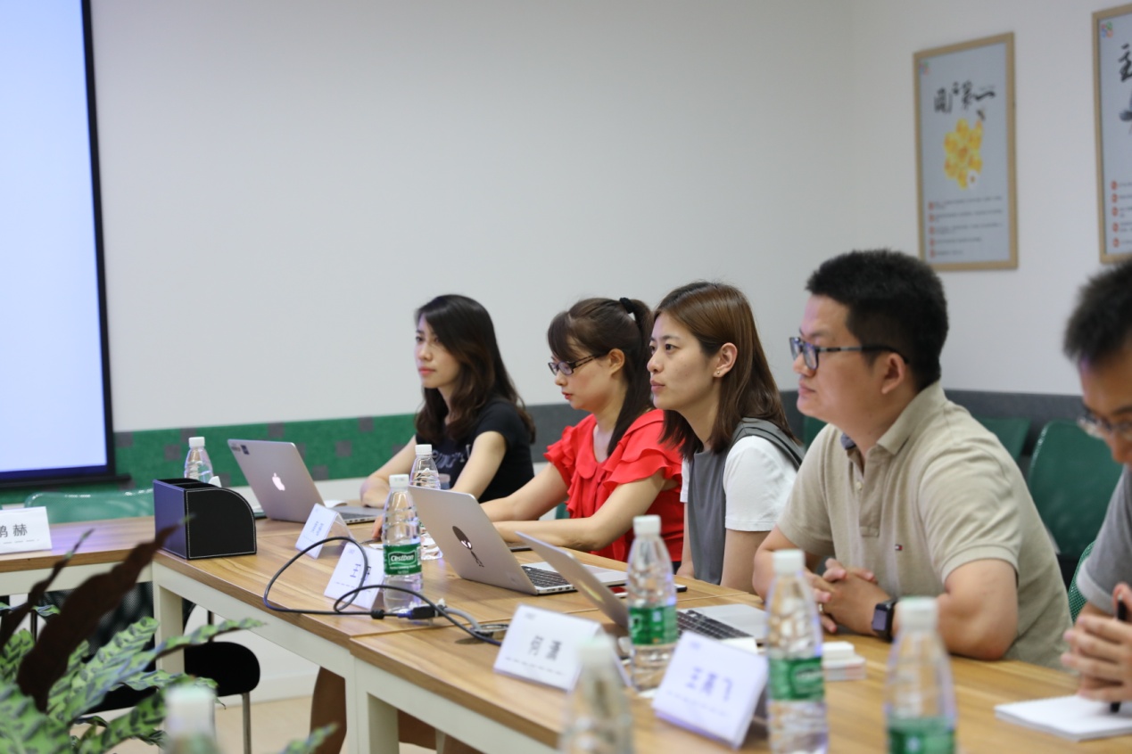 参观完公司环境,大家来到了会议室,就“品牌升级:58品牌背后的设计故事”进行了探讨。何潇总监进行了简单的开场,58设计团队的李岩、王丹、王高飞等设计师,也分别进行了简单的自我介绍与工作内容阐述。