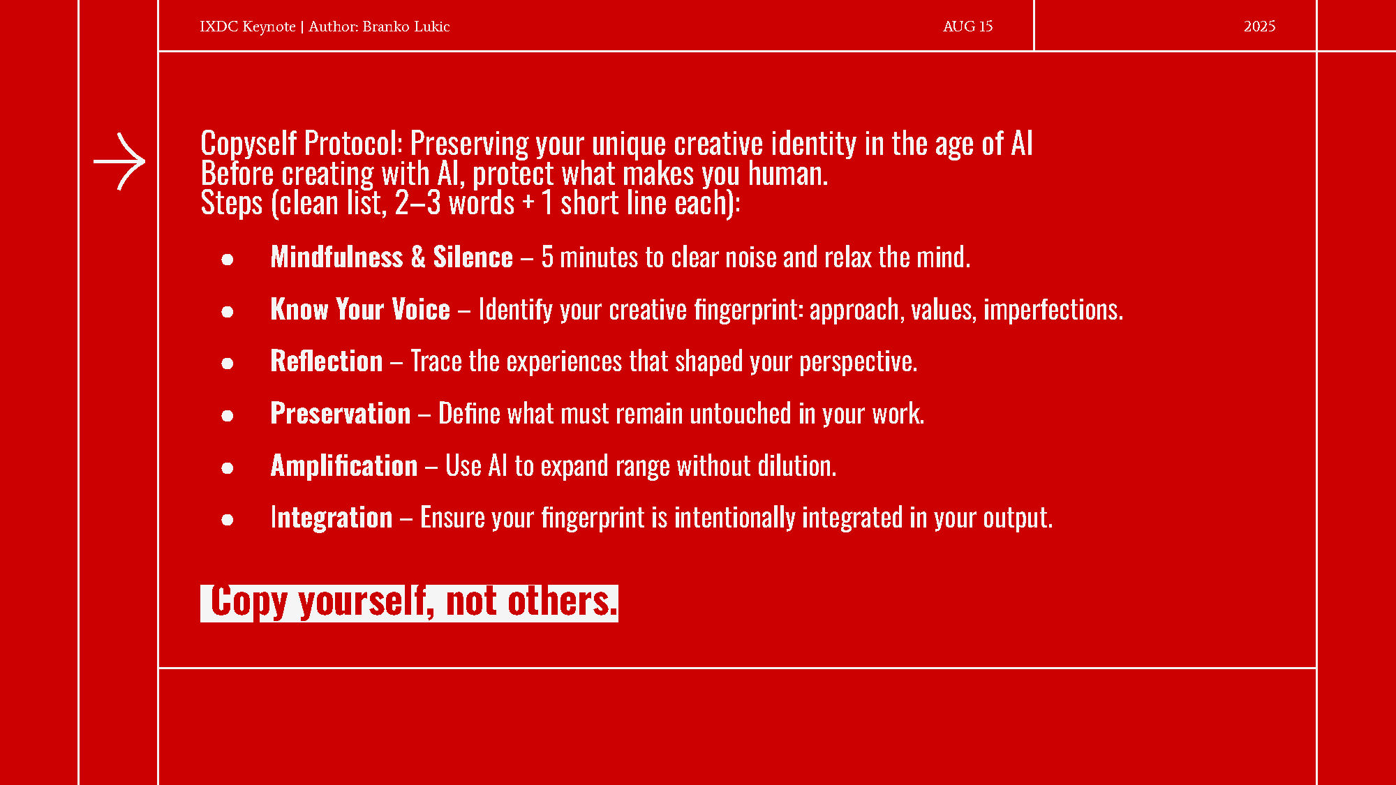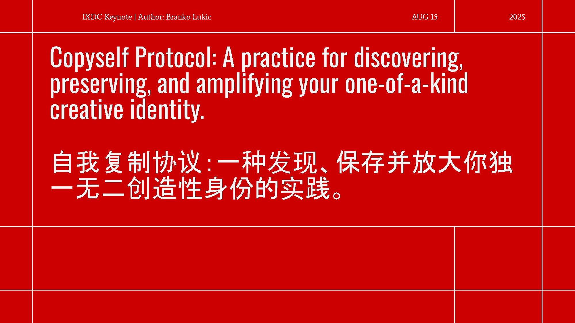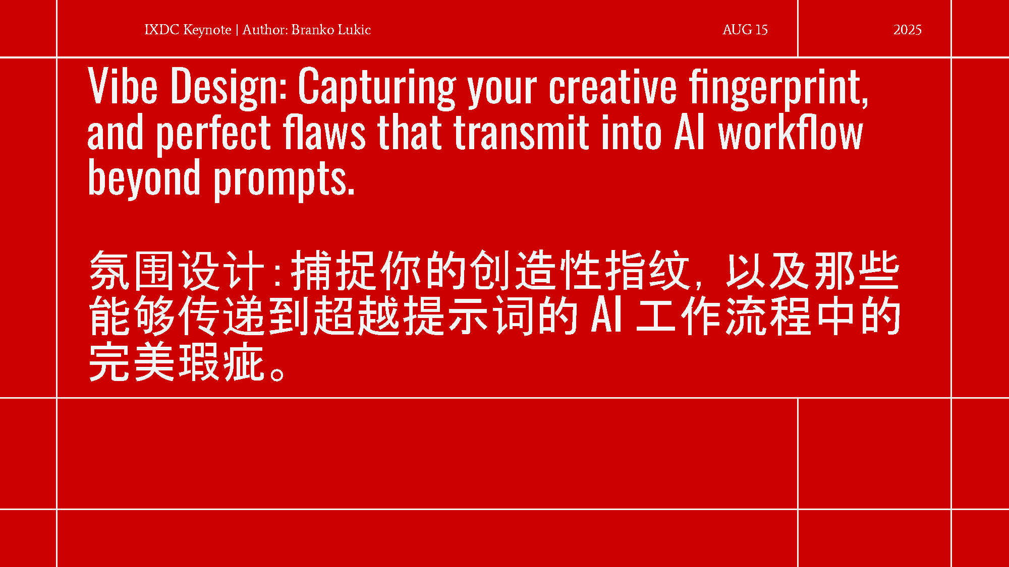 今天,布兰科带着这份实践者的权威登上讲台,挑战设计和创意产业,呼吁大家超越恐惧,拥抱一种更具思想性、更深层次以人为本的人机共生 (symbiosis with technology)。