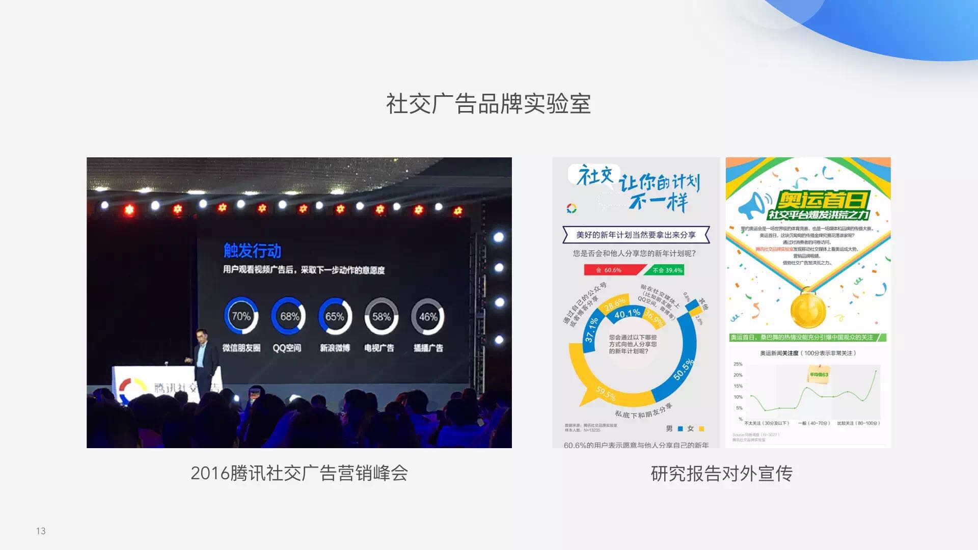 2015年初,微信朋友发布了第一支广告,随后,cdc和社交广告团队成立社交广告品牌联合实验室,做基于产品、事件、行业和人群的用户洞察研究,并将研究结果对外传播,帮助广告主更好地理解消费者的同时,也了解腾讯的数据能力和用户洞察能力,提升对腾讯广告平台的认知和信心。