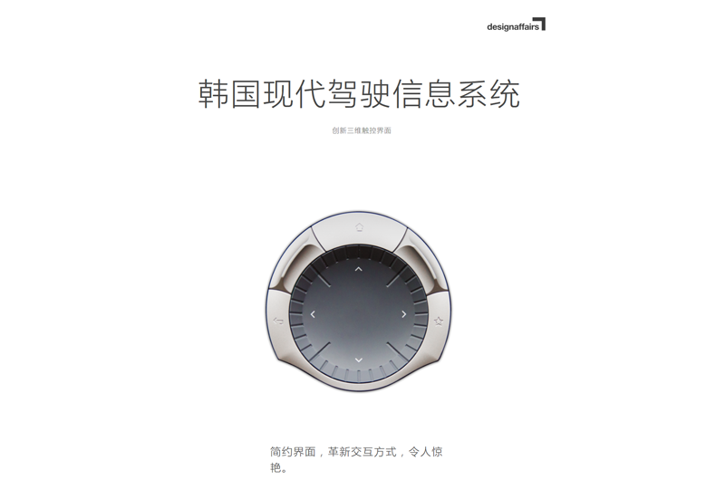 designaffairs团队为韩国现代汽车打造的资讯娱乐系统,开发全新中央控制面板,取得了简约而具有革命性的成果。快速原型制作材料结合电镀喷漆,在创意理念方面开启了无限可能,为未来安全操控汽车资讯娱乐系统的弧线触觉表面开发带来了全新方法。并在多种驾驶环境下对此概念的探索显示出概念的优越性。